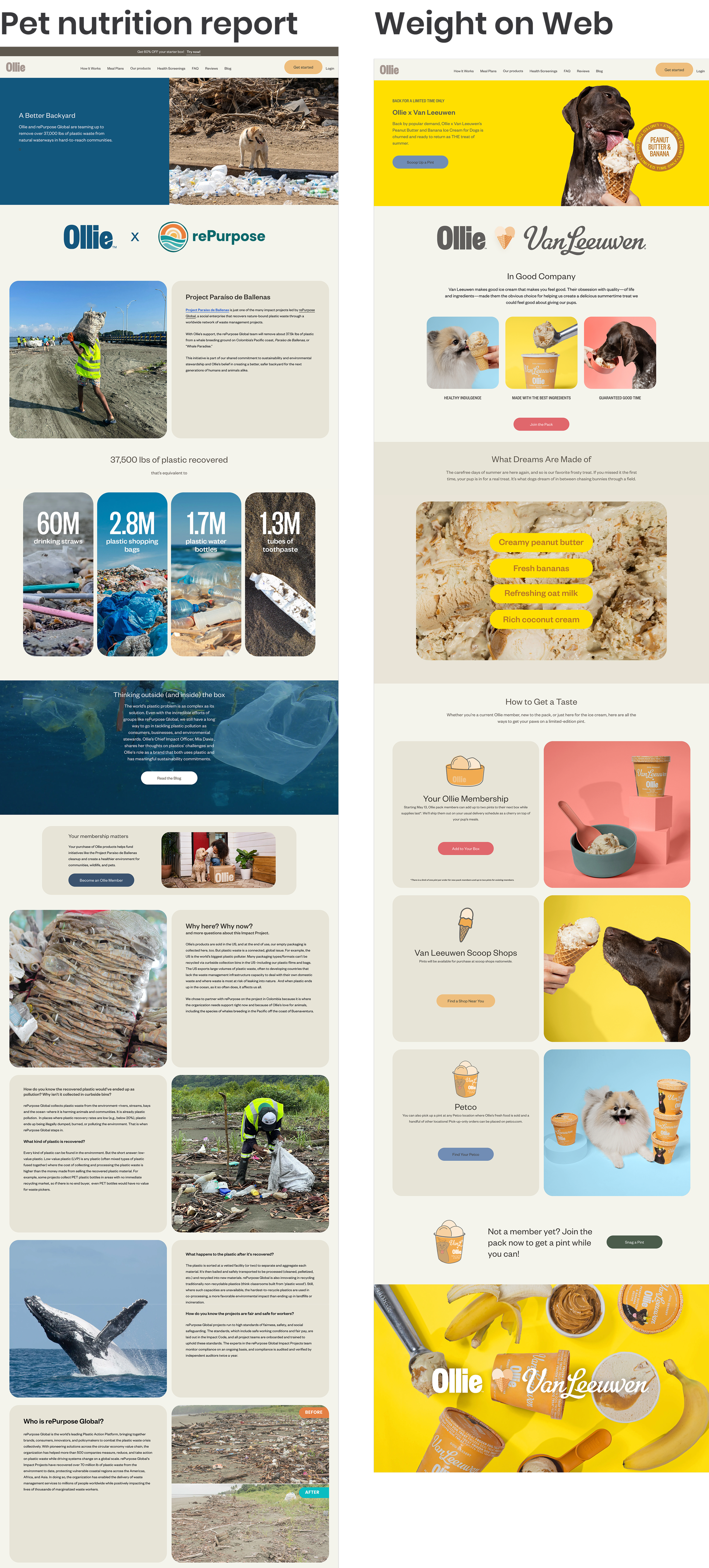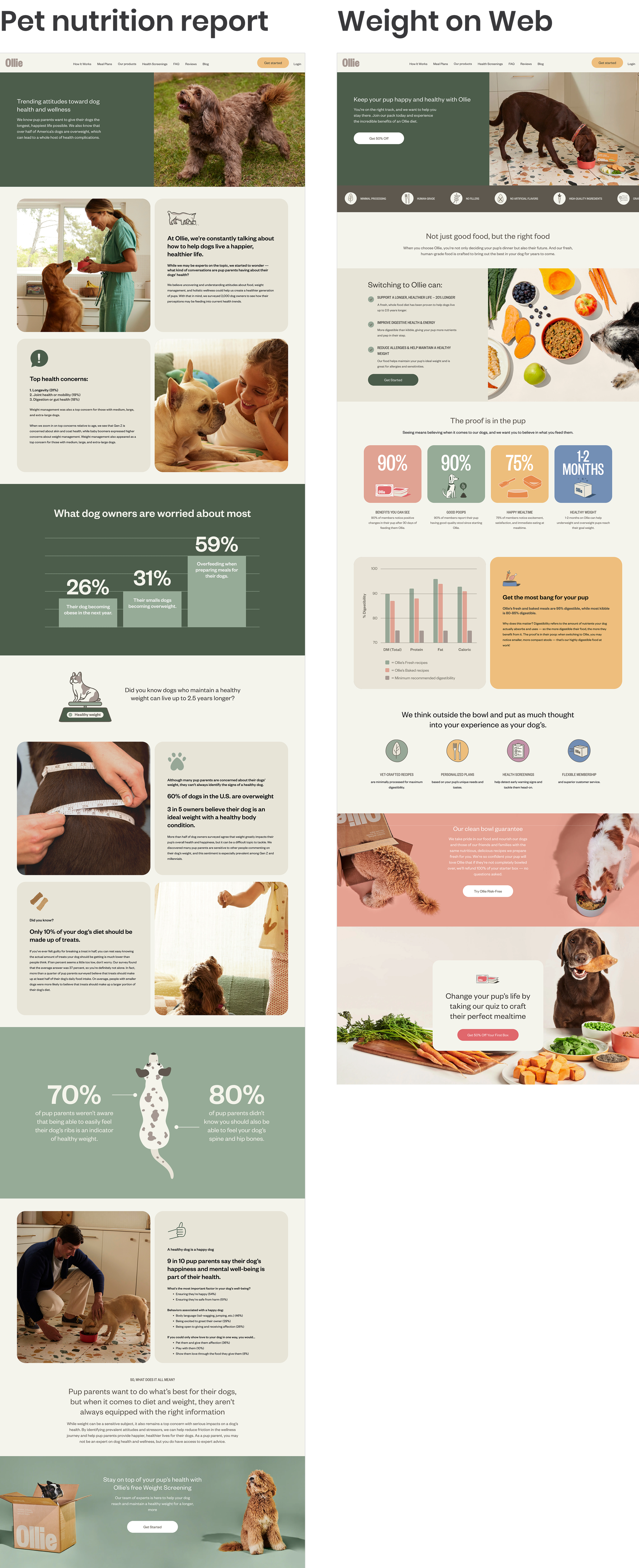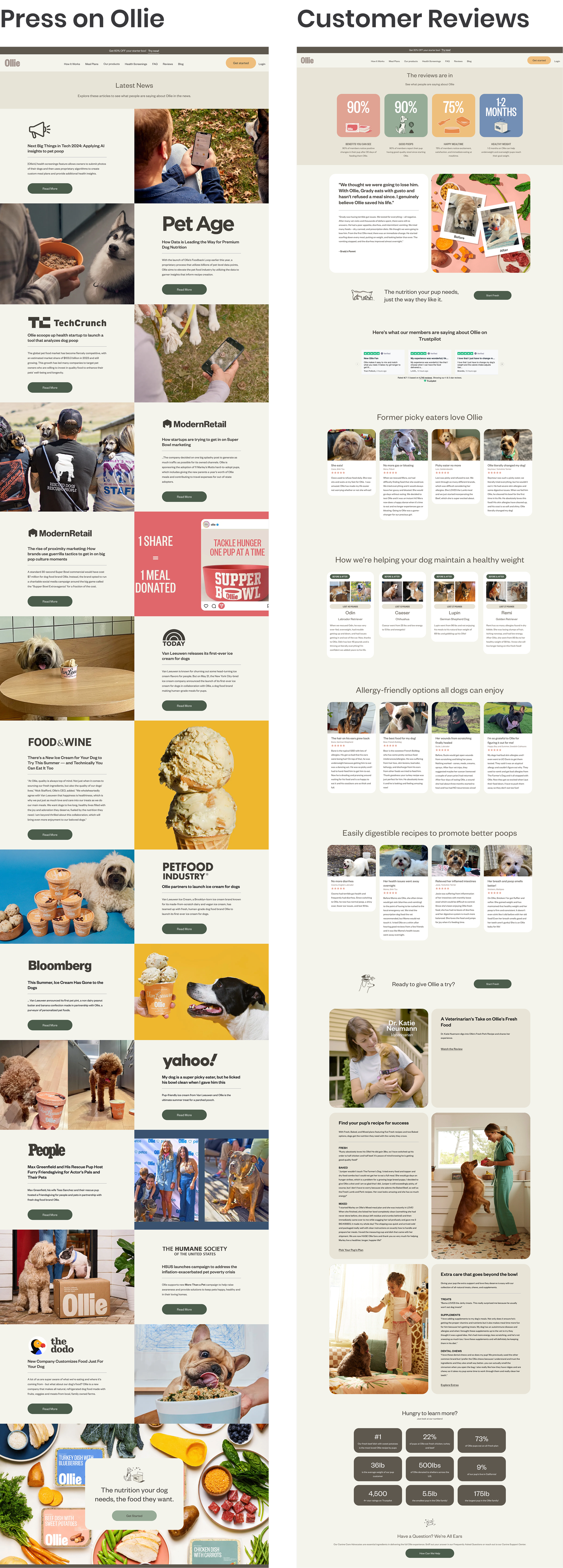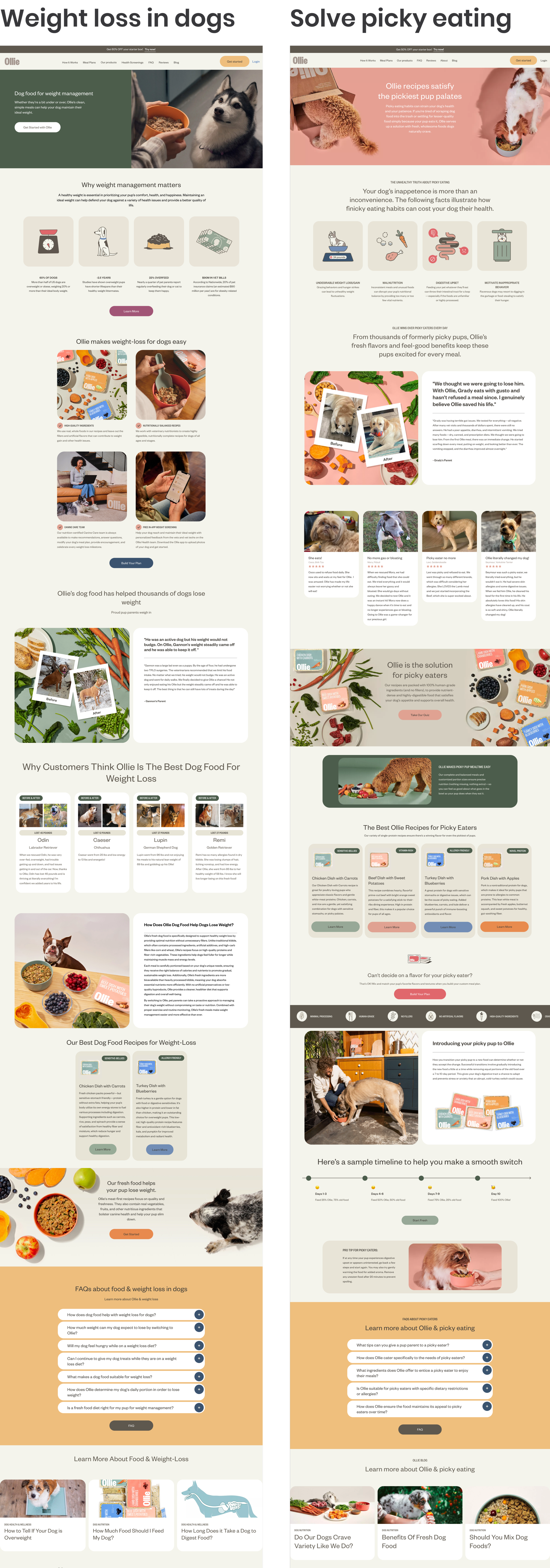 I created these pages for campaigns focused on common reasons why dogs might switch to Ollie’s food. The results from these campaigns led to the creation of many more pages to enhance SEO performance. As a result, over 20 pages were created to meet the team's target goals.